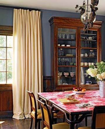 餐厅的桌布值得一提,来自中国的布艺和法国的纽扣拼成了古董级桌布,也是夫妇两人的最爱。
